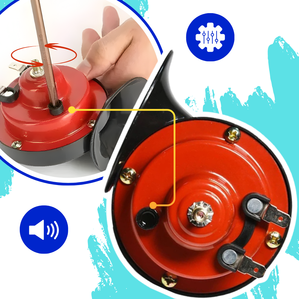 Esta bocina cuenta con un ajuste de volumen integrado que te permite personalizar el nivel de salida para adaptarse a tu entorno. Para ajustar el sonido, simplemente gira el botón de ajuste con unos alicates mientras la bocina está conectada a la alimentación. Tanto si prefieres una alerta ligeramente atenuada para las carreteras suburbanas como si prefieres la máxima intensidad para autopistas o situaciones de emergencia, este control manual pone el poder del sonido en sus manos, precisamente cuando y como lo necesites.