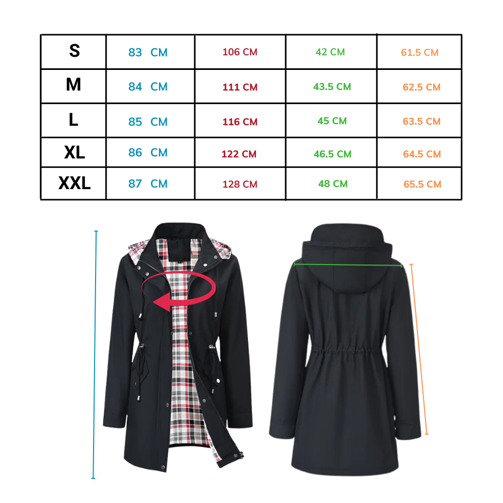 Práctico no significa aburrido. Esta elegante gabardina impermeable está diseñada para su uso en múltiples entornos, desde paseos informales por la ciudad hasta actividades al aire libre más exigentes como senderismo, acampada y ciclismo. Su tejido resistente a las arrugas y de secado rápido facilita su transporte en vacaciones o escapadas de fin de semana, mientras que su forro de cuadros atemporal y sus colores neutros permiten pasar fácilmente de la ropa de exterior a la oficina o a entornos sociales. Con una sola prenda, obtienes la flexibilidad de vestirte para la lluvia, el viento o el estilo diario.