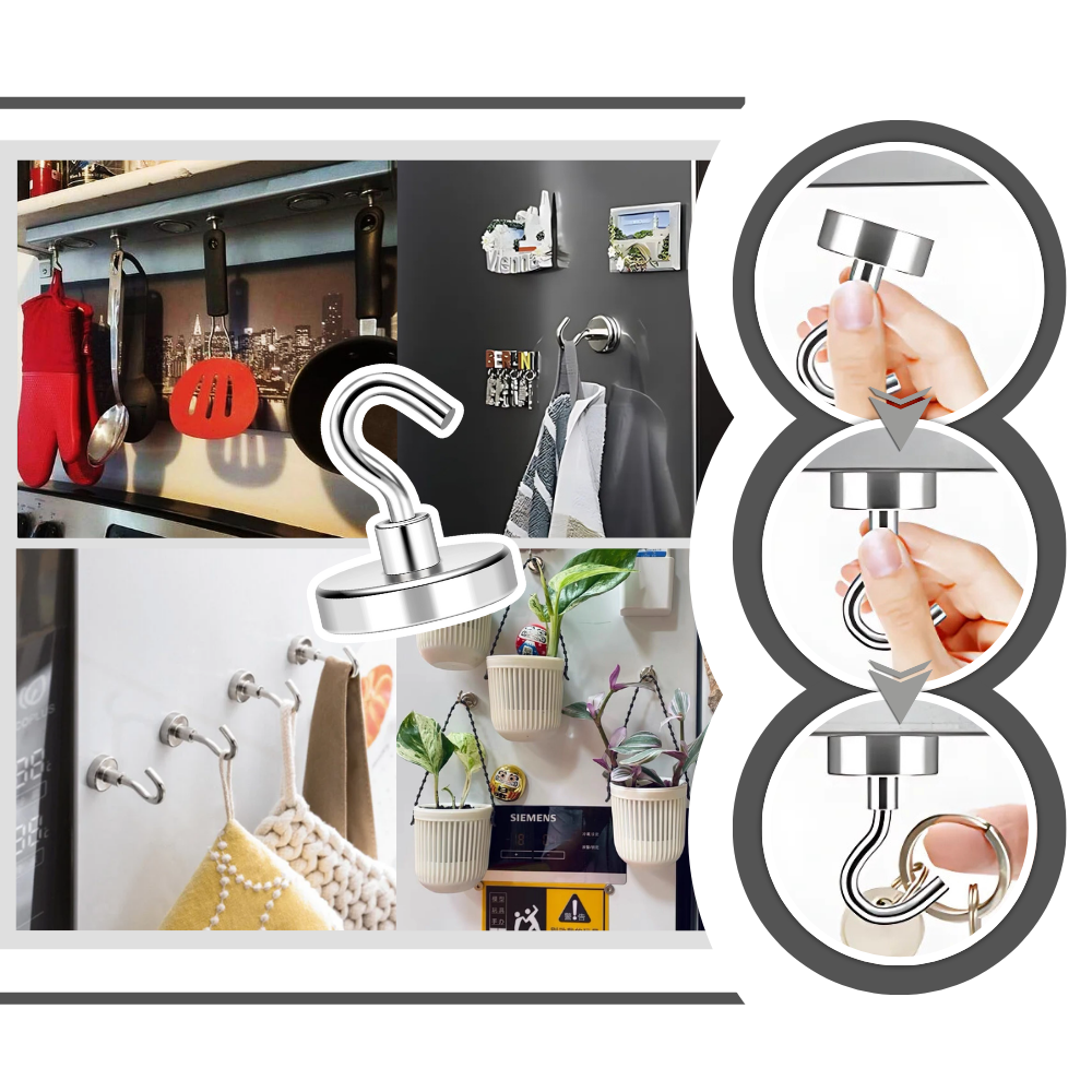 Diseñados para funcionar en cualquier entorno, los ganchos magnéticos son <strong> resistentes a la intemperie </strong> y mantienen su resistencia en una amplia gama de condiciones. El triple recubrimiento resistente a la corrosión protege contra la lluvia, la humedad y el aire salino del mar, lo que los hace perfectos para barcos, autocaravanas, patios y cocinas al aire libre. Tanto si estás acampando, viajando o trabajando en un entorno con mucha humedad, estos ganchos siguen siendo fiables y garantizan que tus artículos permanezcan en su sitio sin importar el pronóstico.