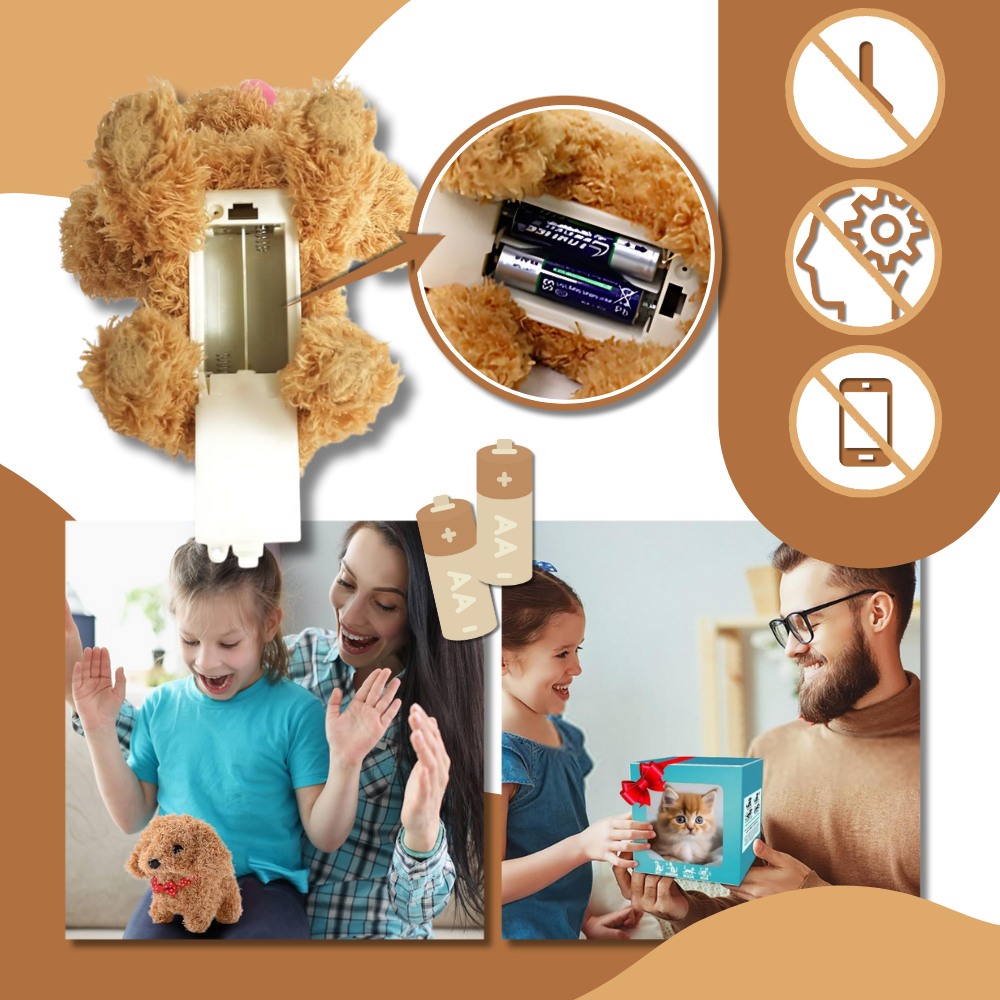Dar vida al adorable cachorro robot es tan fácil como insertar dos pilas AA, sin aplicaciones complicadas, sin configuraciones que requieren mucho tiempo y sin necesidad de conocimientos técnicos. En cuestión de minutos, los niños pueden disfrutar de su nuevo amigo peludo y los padres pueden relajarse sabiendo que no hay nada complicado que mantener. Su diseño intuitivo lo hace fácil de usar para todas las edades, tanto si lo configuras como el primer juguete para un niño como si quieres sorprender a un ser querido con un regalo especial.