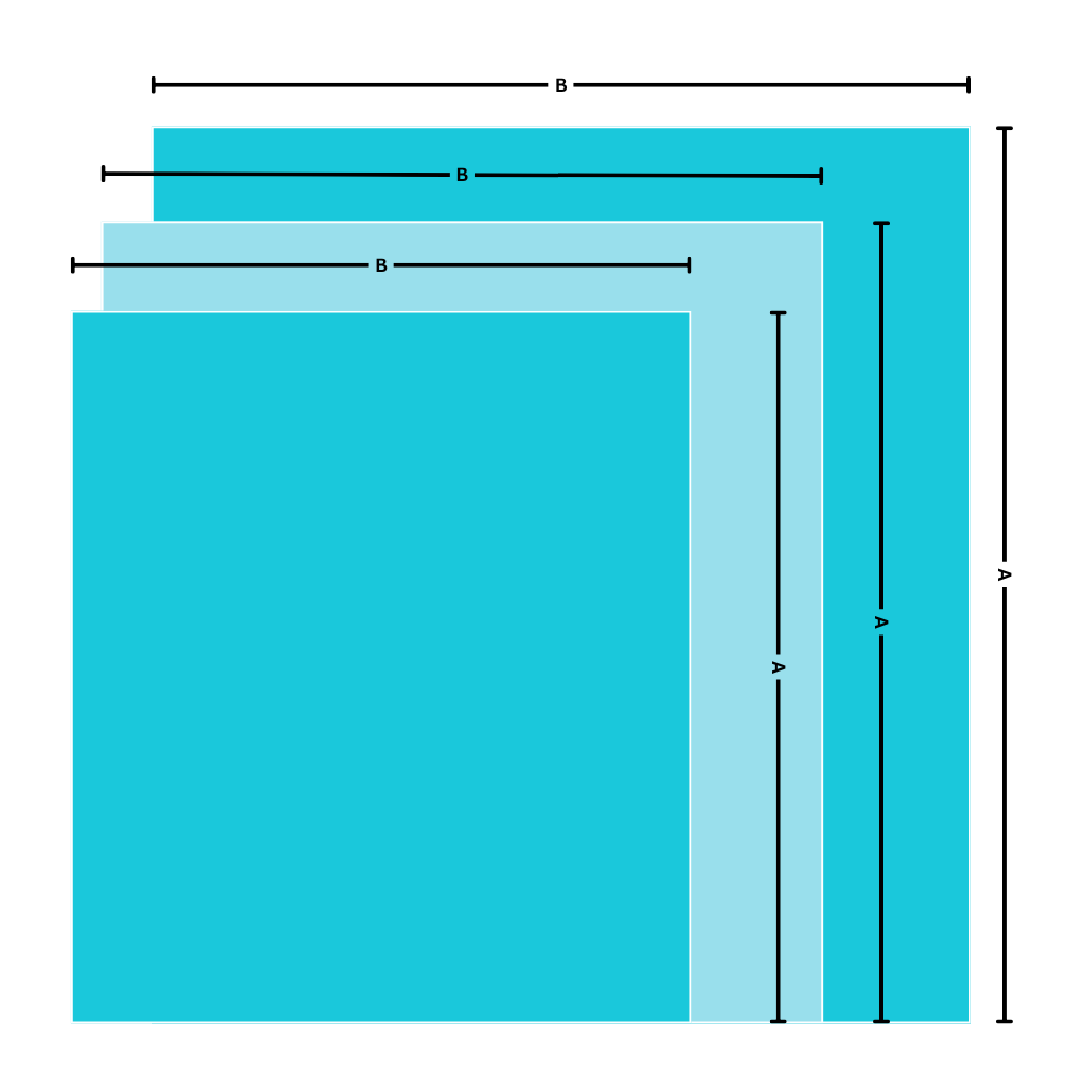 Dimensiones: A x B = 100 × 70 cm A x B = 150 × 130 cm A x B = 200 × 150 cm