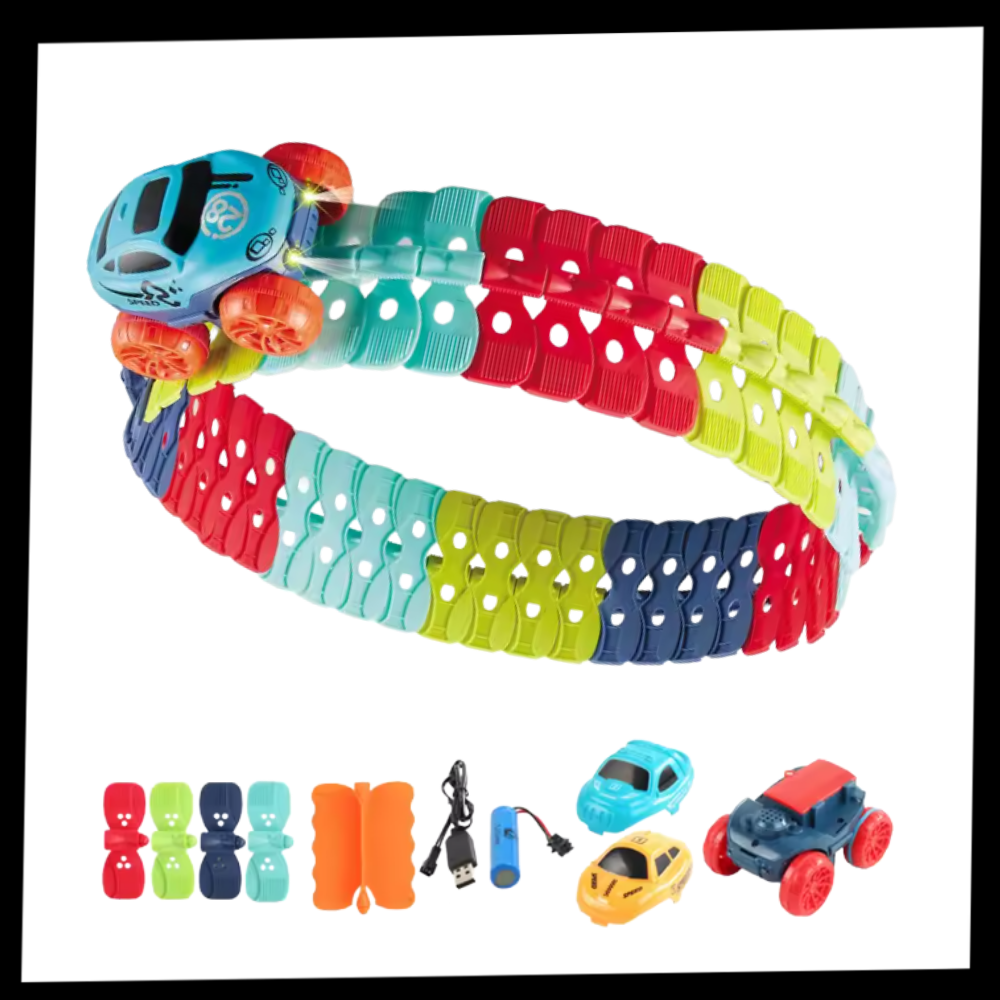 El coche de carreras LED incluido en el set ofrece mucho más que luces intermitentes: ofrece una experiencia a toda velocidad. Mientras recorre la pista a toda velocidad, el coche parpadea con vibrantes luces LED, iluminando la habitación y convirtiendo cada carrera en un espectáculo visual. Diseñado para ofrecer un gran rendimiento, puede subir pendientes de hasta 75 grados, corriendo como una mini montaña rusa con giros, curvas y emocionantes descensos. Esto hace que cada sesión de juego se sienta como una atracción de parque de atracciones, manteniendo a los niños entretenidos con emoción sin fin.