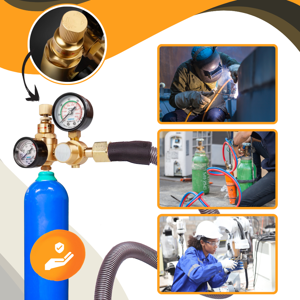 Fabricado pensando en la adaptabilidad, el regulador ofrece una amplia compatibilidad con una gran variedad de cilindros de gas argón y configuraciones de soldadura. Su interfaz estándar G5/8 garantiza una conexión sin problemas a los tanques más comunes, lo que lo convierte en una herramienta imprescindible para talleres, reparación de automóviles, garajes domésticos y estudios de fabricación de metales. Tanto si cambias entre diferentes sistemas de soplete como si lo utilizas en varios proyectos, esta flexibilidad reduce el cambio de equipos y agiliza el proceso. Está diseñado para adaptarse a tus necesidades, y no al revés, ofreciendo un nivel de comodidad que a menudo se pasa por alto, pero que los soldadores ocupados aprecian enormemente.