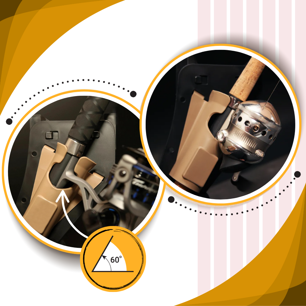 Lo que hace de este soporte para caña de pescar un item de alto rendimiento es su ranura inteligentemente angulada de 60 grados. Este diseño no es arbitrario, está optimizado para facilitar el movimiento, lo que te permite deslizar la caña hacia dentro y girarla hacia fuera con un solo movimiento suave. Para aquellos que no estén familiarizados con el manejo de cañas, este ángulo imita la trayectoria natural que siguen la mano y el brazo al recuperar o asegurar una caña a tu lado. No hay pestillos, botones o cierres con los que forcejear, por lo que incluso en momentos de mucha presión, mientras rearmas un sedal o desenganchando un pez, puedes guardar la caña de forma segura sin mirar ni perder el agarre.