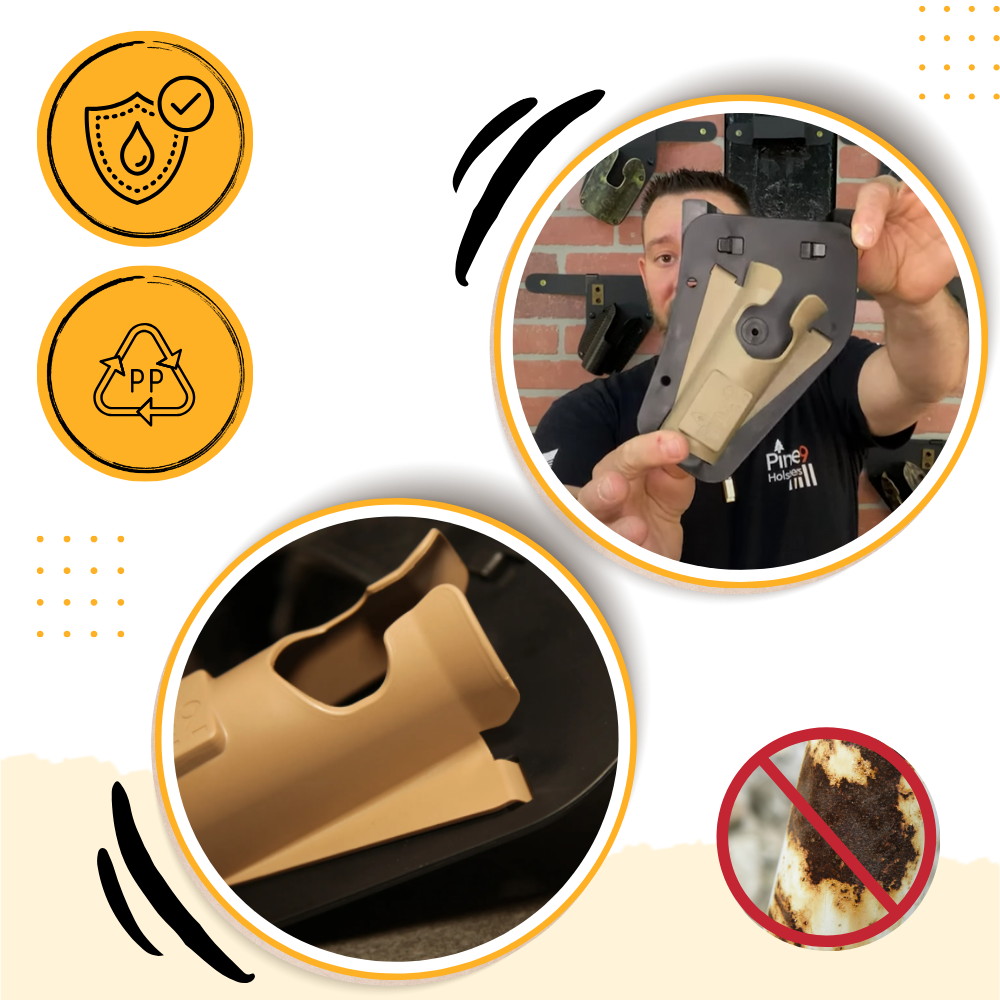 A diferencia de los portacañas tradicionales que utilizan tornillos, bisagras o soportes metálicos, este soporte está diseñado sin componentes metálicos. Su estructura está hecha completamente de polipropileno reciclable y plásticos HDPE, los mismos materiales duraderos y resistentes a la intemperie utilizados en equipos al aire libre y aplicaciones marinas. Esto no solo garantiza que la funda no se oxide ni se corroa con el tiempo, especialmente cerca del agua, sino que también significa que es ultraligera y prácticamente no necesita mantenimiento. Para los pescadores que pescan a menudo en ambientes húmedos, fangosos o mojados, esta construcción totalmente de plástico ofrece tranquilidad y un rendimiento duradero.