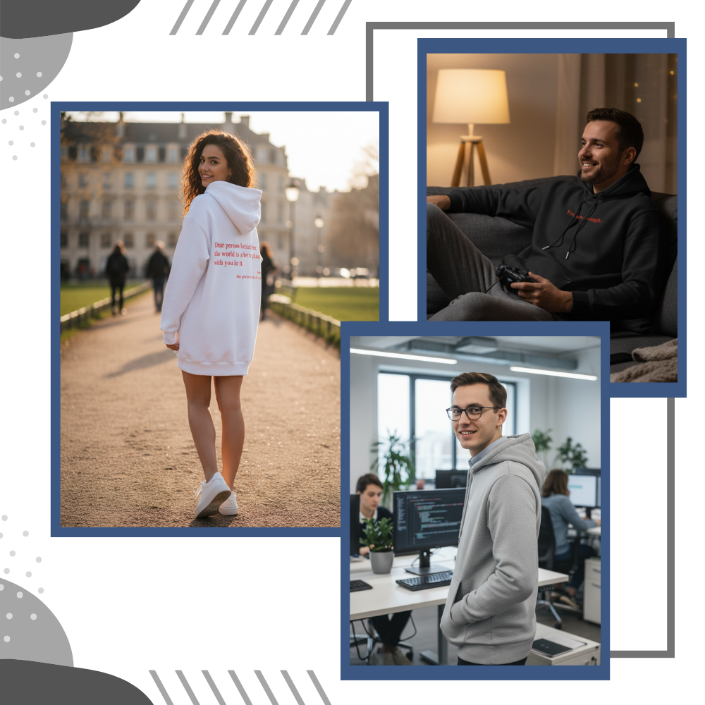 En un mundo en el que tantas personas luchan en silencio contra la ansiedad, la depresión y la inseguridad, esta sudadera con capucha se convierte en algo más que una simple prenda de ropa: es un silencioso acto de compasión. En el corazón de su diseño se encuentra un mensaje sutil pero poderoso, colocado cuidadosamente en la parte trasera de la sudadera. No se trata solo de moda, sino de una afirmación, no solo para quien la lleva puesta, sino también para todos los transeúntes que puedan estar cargando con un peso invisible. Es una forma amable de decirle a alguien, sin decir una palabra, que su vida importa y que se le ve. Esta sudadera con capucha transmite calidez en más de un sentido : es un recordatorio suave y fácil de llevar de que la amabilidad es gratuita y de que tienes el poder de compartirla con el mundo cada vez que sales a la calle.